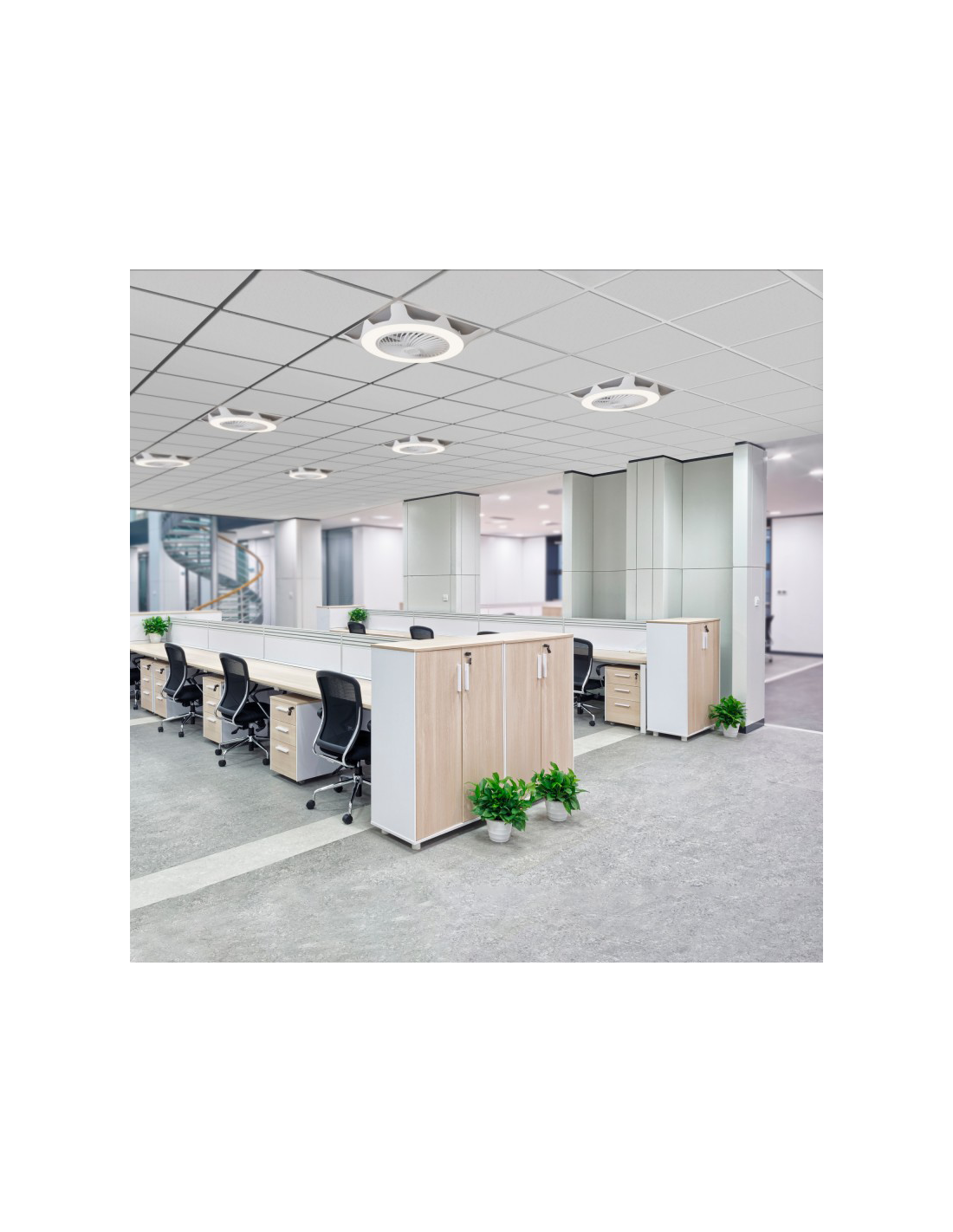 Le ventilateur de plafond UFO génère un effet de ventilation qui aide à purifier l'air en réduisant les niveaux de dioxyde de carbone et d'autres particules nocives pour la santé.