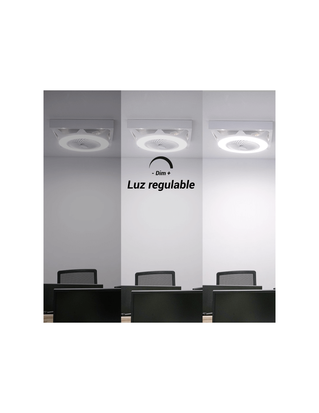 Un autre aspect très remarquable du ventilateur de plafond UFO est son mode d'installation : simple et rapide . Sa certification IP20 le rend parfait pour une utilisation en intérieur. Il offre un angle d'ouverture de 120º.