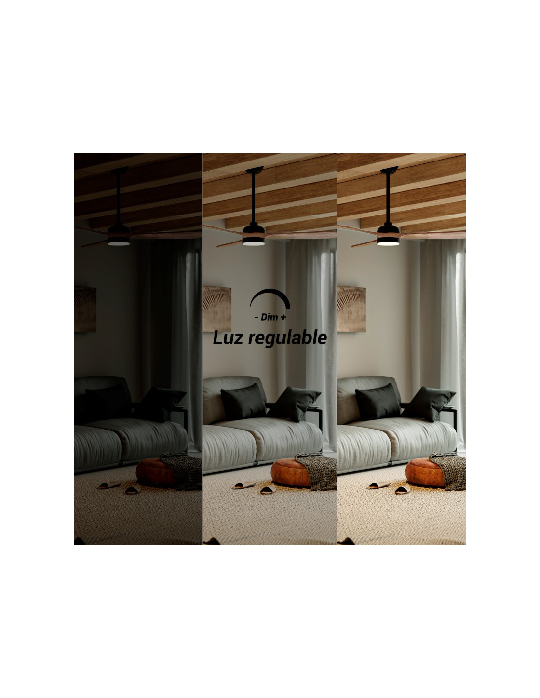 Ventilateur de Plafond LED Tonda Noir Pales Bois IP44 DC