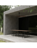 Son corps est en métal fini en noir mat et ses 3 pales sont en bois naturel foncé, avec lequel il génère un contraste de matériaux caractéristique du style industriel.