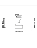 Nova XXL est un ventilateur de plafond d'un diamètre de 1850 mm , conçu pour ventiler sans effort des espaces intérieurs ou extérieurs qui dépassent 32m2, ce qui nous donne une idée de son incroyable puissance.