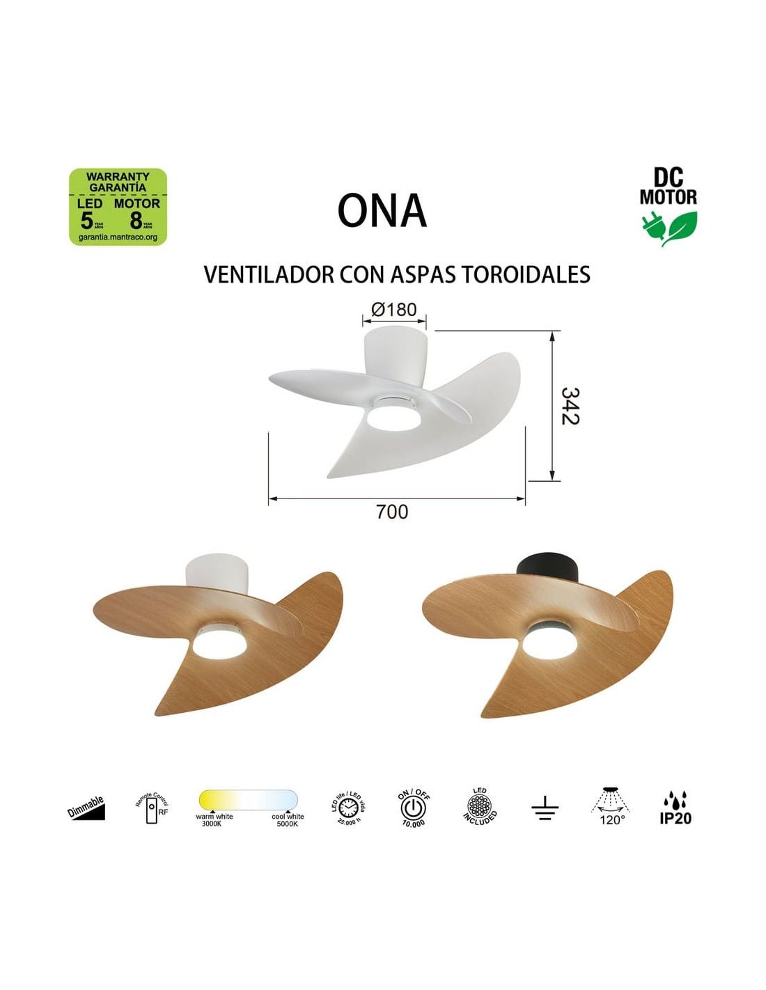 Ventilateur plafond LED ONA blanc bois Ø700mm 18W 2520lm CCT 3000-5000K moteur silencieux
