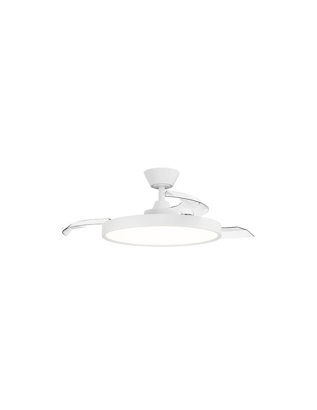 Découvrez le BOMBAY STYLE M , une réinvention moderne du ventilateur de plafond classique. Ce ventilateur innovant à pales rétractables transparentes se transforme en une lampe discrète à lumière LED CCT dimmable lorsque les pales sont fermées, offrant un éclairage adaptable à vos besoins. Son design minimaliste et sa finition blanc mat s'intègrent parfaitement dans n'importe quel environnement, offrant fonctionnalité et style sans sacrifier l'esthétique.