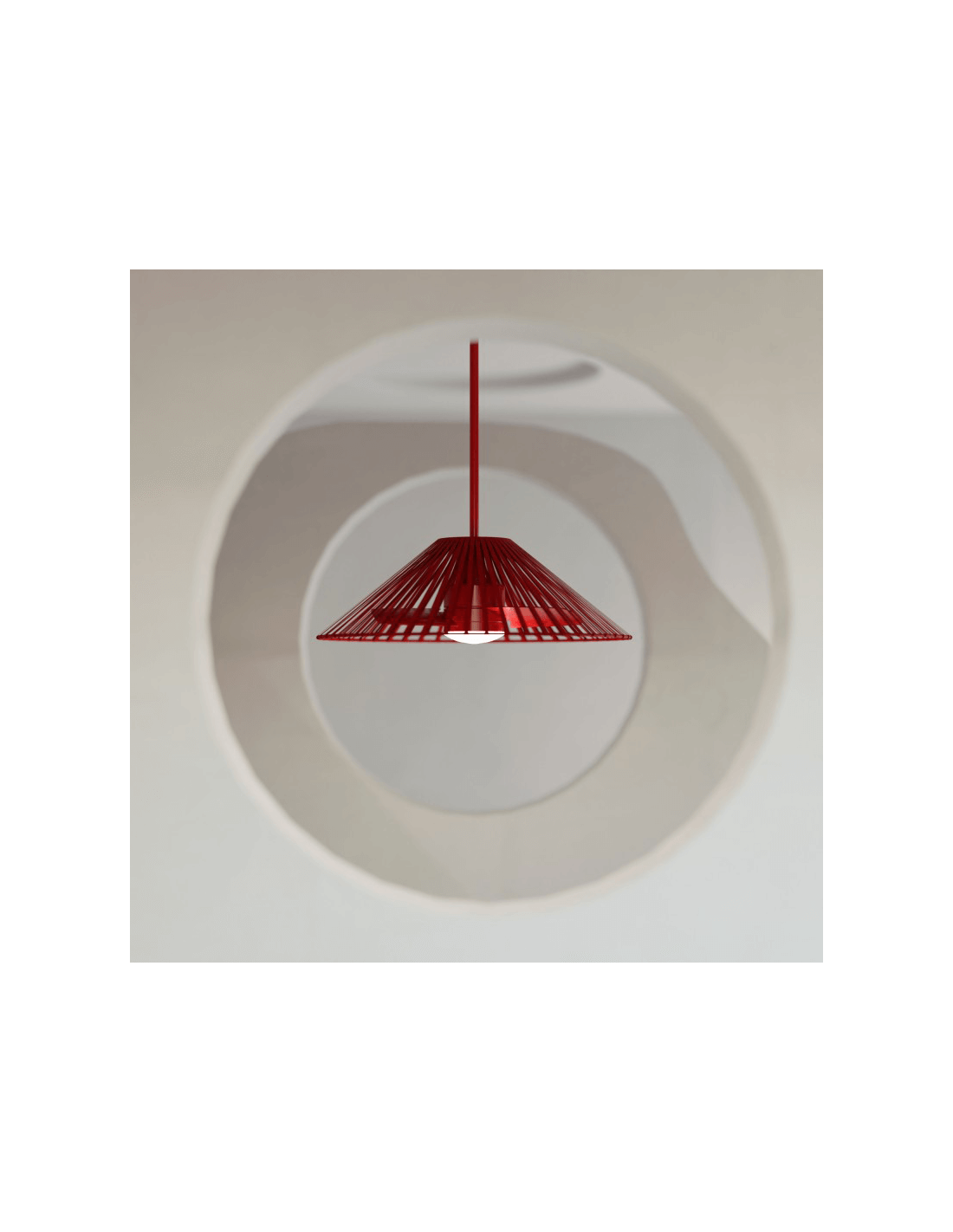Le ventilateur Terra est en métal avec trois pales en ABS au fini bordeaux. À première vue, il ressemble à un luminaire normal mais avec son moteur DC 2.0 d'une puissance maximale de 7W et 6 vitesses , il offre un flux d'air optimal pour les petites pièces extérieures et intérieures .