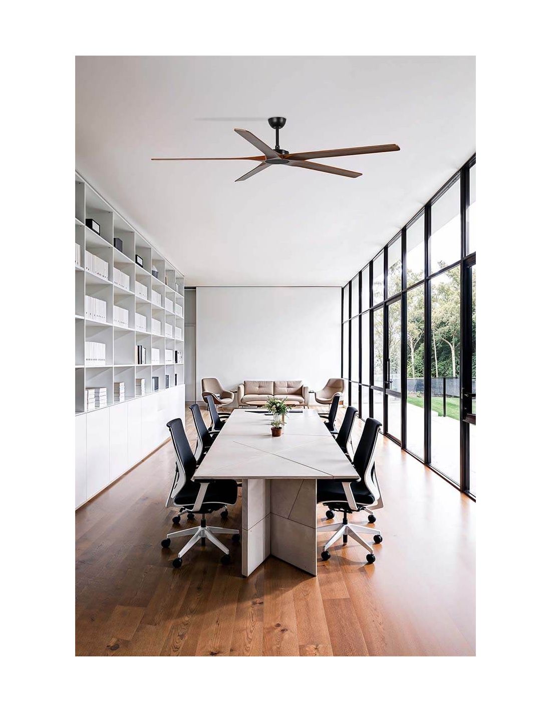 Le ventilateur de plafond BIGWOOD 20 XL , d'un diamètre de 200 cm et au design industriel, est fait pour les grands espaces (de 39 à 60 m²) tels que les entrepôts, les salles de sport ou les zones commerciales .