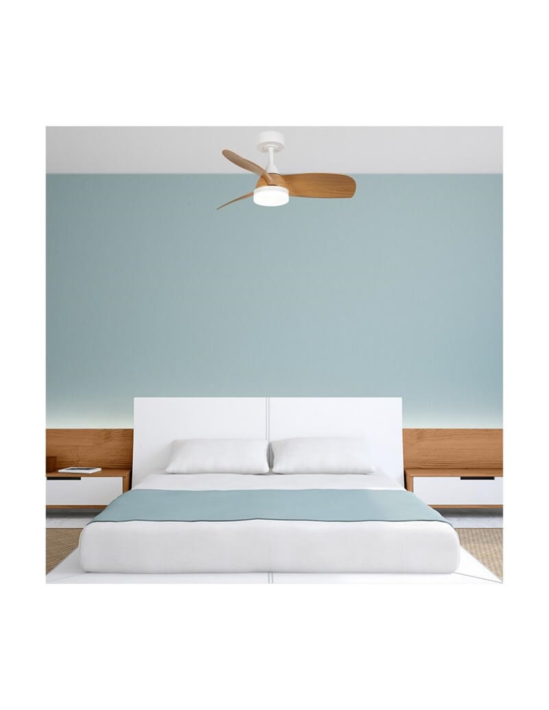Ventilateur de Plafond LED BYAN Mini Blanc+Bois 18W 2000Lm CCT Dim