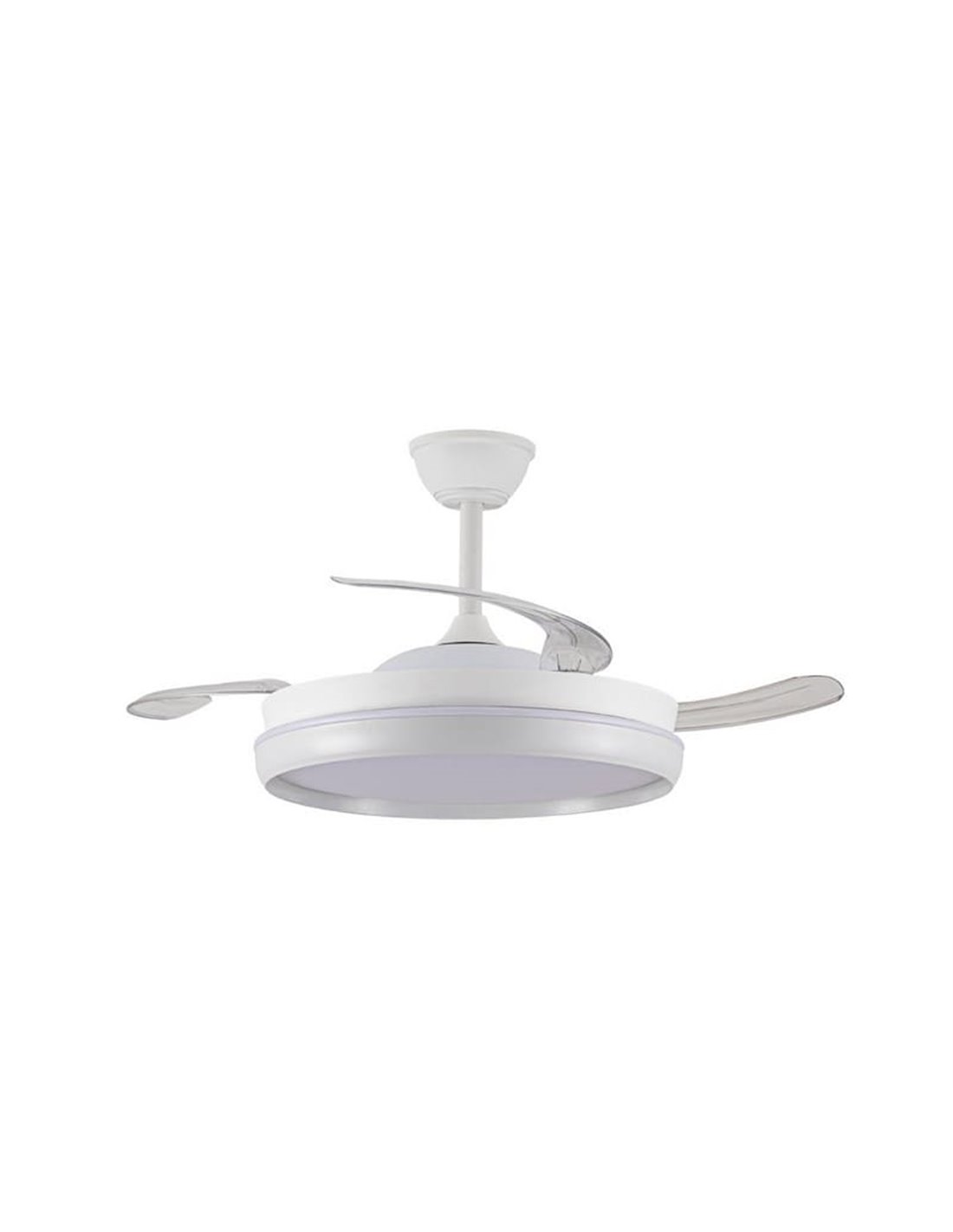 Le ventilateur de plafond LED CHARLY EVO est une solution avant-gardiste qui combine un éclairage et une ventilation efficaces dans un design élégant avec des pales rétractables . Ces pales se déploient lorsque le ventilateur est allumé et se rétractent lorsqu'il est éteint, offrant une esthétique épurée et moderne.
