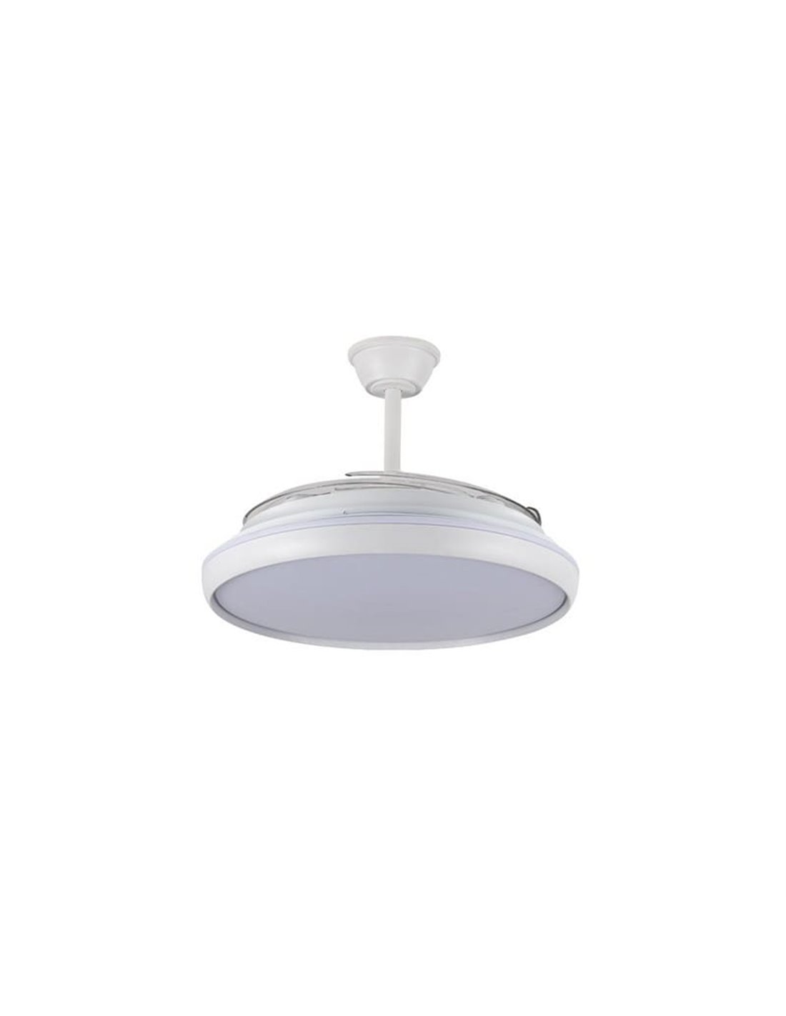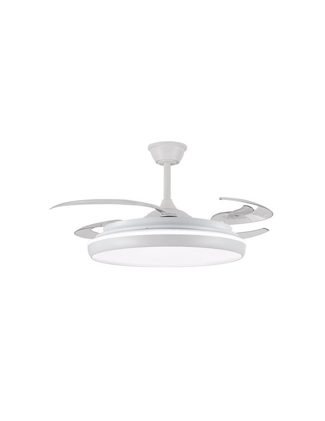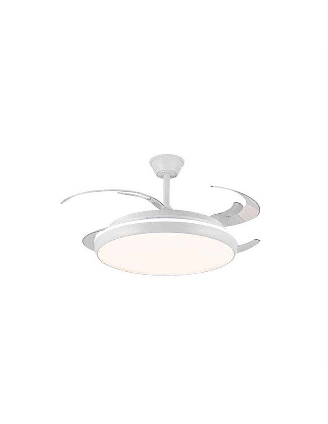 Le ventilateur de plafond LED CHARLY L est une solution élégante qui combine un éclairage et une ventilation efficaces dans un design moderne avec des pales rétractables . Ces pales se déploient lorsque le ventilateur est allumé et se rétractent lorsqu'il est éteint, offrant une esthétique épurée et sophistiquée.