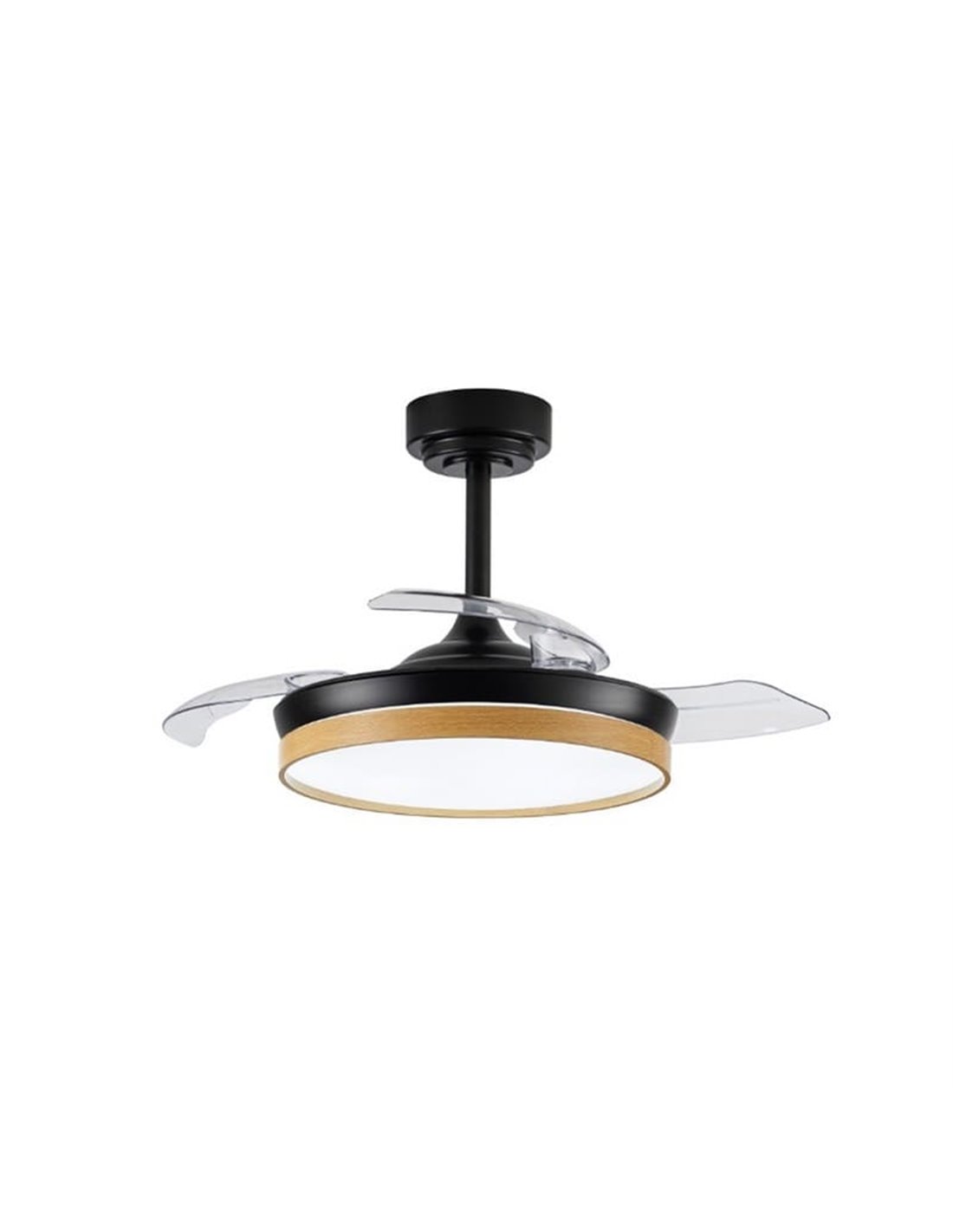 La finition noire apporte élégance et modernité, tandis que les pales pliables offrent une solution pratique et esthétique, s'adaptant à différents styles décoratifs et optimisant l'espace lorsque le ventilateur n'est pas utilisé.