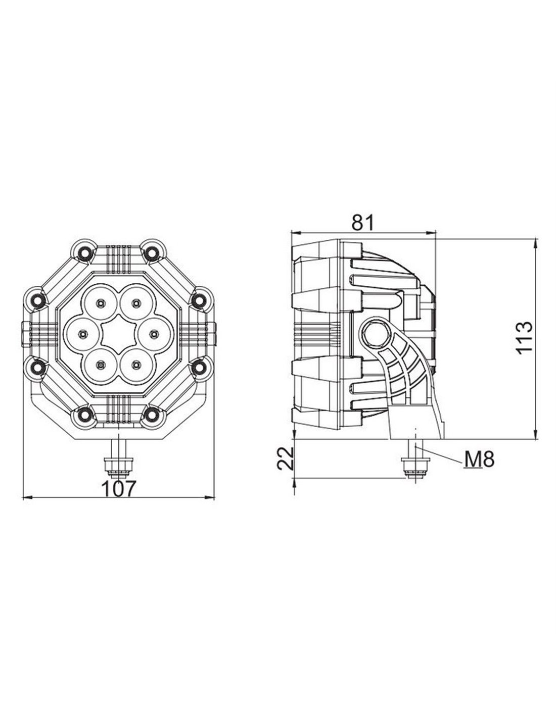 Ideal para máquinas e veículos industriais que exigem alcance máximo, como equipamentos florestais, máquinas agrícolas, escavadeiras e veículos de manutenção. Seu suporte permite direcionar a luz com precisão para a área de trabalho.