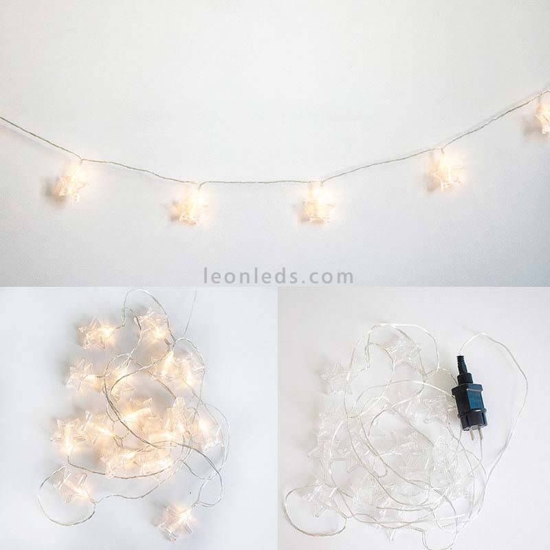 A grinalda de novas estrelas de jardim Eles têm 16 estrelas transparentes e graças à sua luz calorosa, farão desta grinalda um indispensável tanto para o terraço como para a sala de estar da sua casa, desde pode ser instalado em estadias internas e externas porque tem ip44 proteção contra sólidos de tamanho maior que 1mm e respingos de água. Além disso, eles são fabricados com materiais naturais trançados e com as esferas de à prova de choque.
