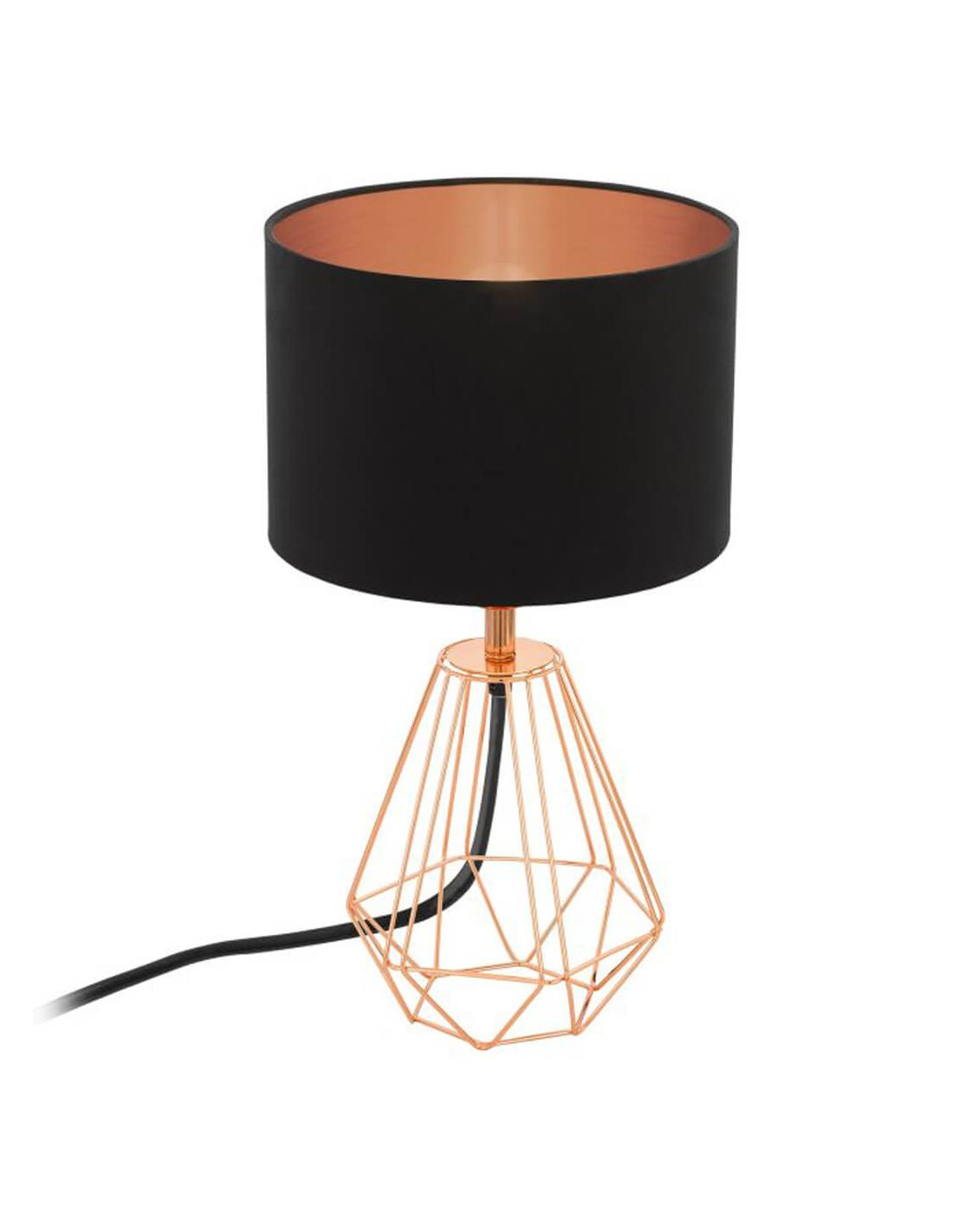 O corpo da luminária se destaca pela base em aço eletrosoldado em formato de diamante com acabamento em cobre de alta qualidade. Essa estrutura de arame não só confere leveza visual, como também garante uma base estável com distribuição uniforme do peso. Com 30,5 cm de altura, ela se encaixa perfeitamente em espaços pequenos sem sobrecarregar móveis ou prateleiras.