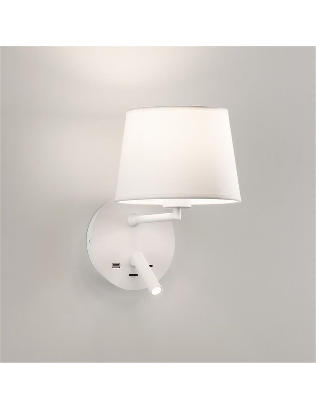 Mas isso não é tudo... o aplique STILO também inclui portas USB E USBC! Agora você pode carregar seus dispositivos eletrônicos diretamente da sua lâmpada favorita e aproveitar ao máximo cada canto da sua casa.