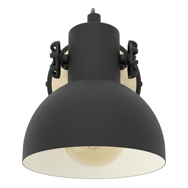 Aplique LUBENHAM da EGLO com desenho industrial em metal preto e madeira . Ideal para iluminar com estilo a sala, quarto ou corredor . Compatível com lâmpadas E27 (não incluídas).