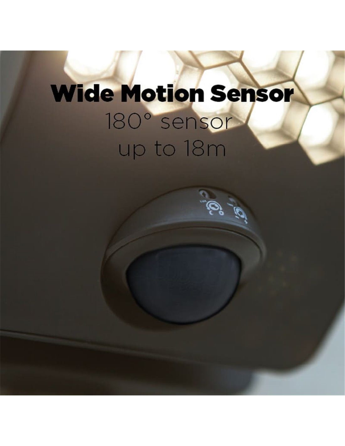 O aplique LED para exterior Lutec ATLANTIS combina design moderno com funcionalidades avançadas. Fabricado em alumínio pesado com acabamento cinza escuro, possui cabeça ajustável que pode girar 90°, permitindo direcionar a luz de acordo com sua necessidade. Incorpora um sensor de movimento PIR ajustável para maior segurança. Com potência de 23,5W , oferece fluxo luminoso do módulo de 3.800 lúmens e do acessório de 3.100 lúmens , com opções de temperatura de cor de 3.000K ou 4.000K . A sua classificação de protecção IP54 garante resistência às intempéries, tornando-o ideal para iluminar e embelezar os seus espaços exteriores.
