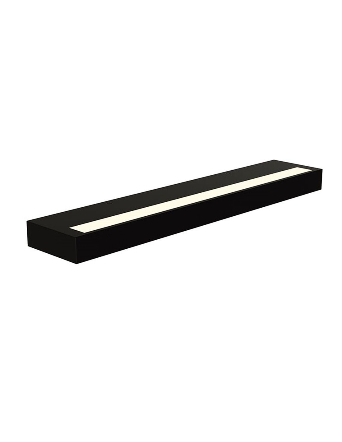 Luminária de parede LED preta CONIL de 40 W , design retangular moderno, medindo 52 cm, com luz ascendente e acabamento preto fosco. Com 2480 lm de potência e tecnologia CCT dimerizável , permite ajustar a tonalidade e a intensidade para criar ambientes personalizados. Ideal para salas de estar, corredores ou espaços corporativos que buscam iluminação eficiente, elegante e de alto desempenho com um estilo contemporâneo.
