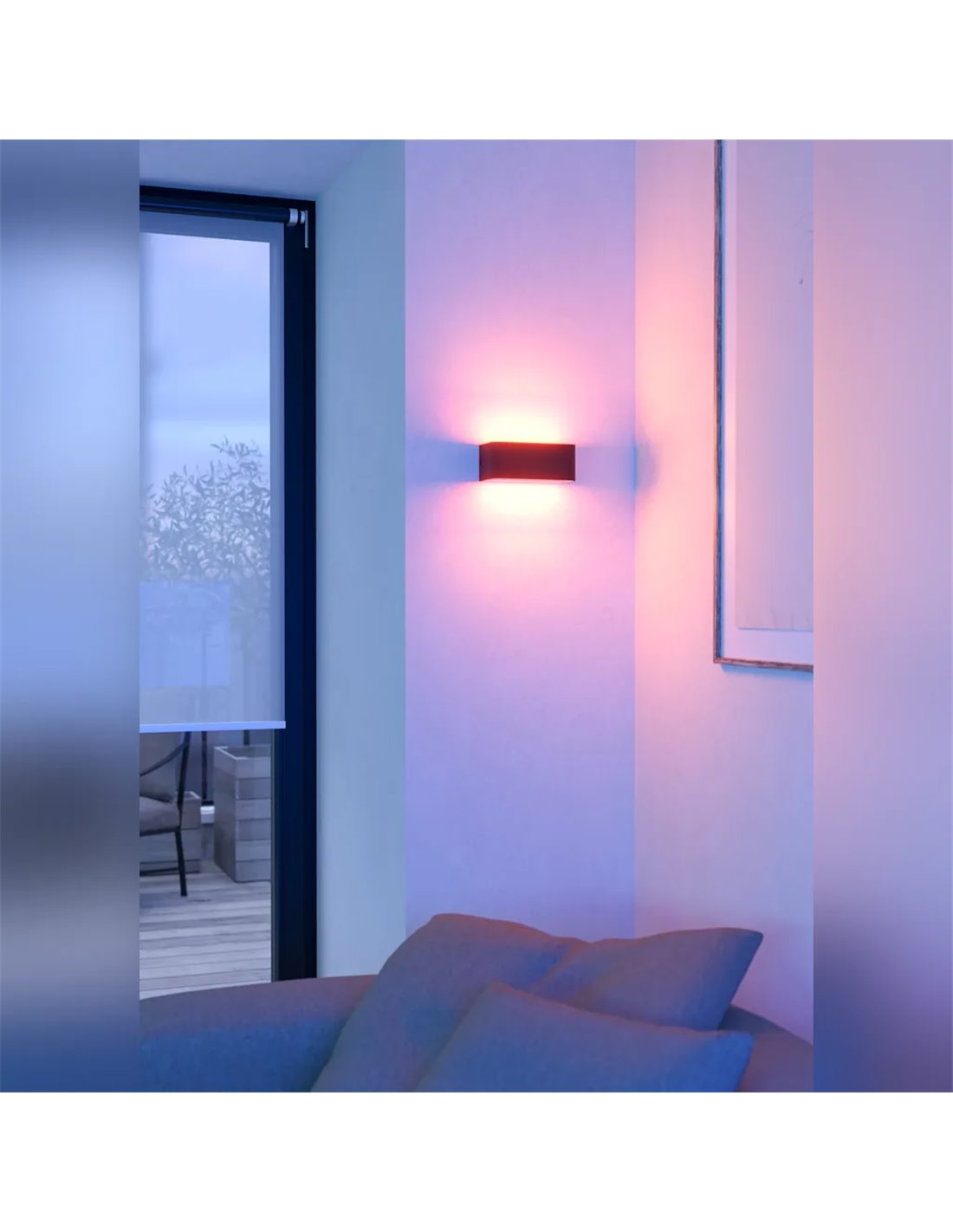 O aplique de parede SANIA-Z permite a personalização completa da iluminação graças à sua tecnologia RGB+CCT, ideal para criar ambientes decorativos em interiores ou exteriores.