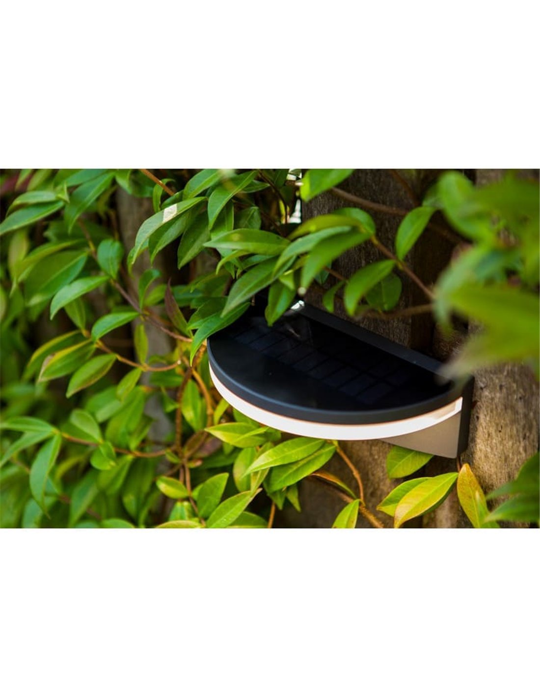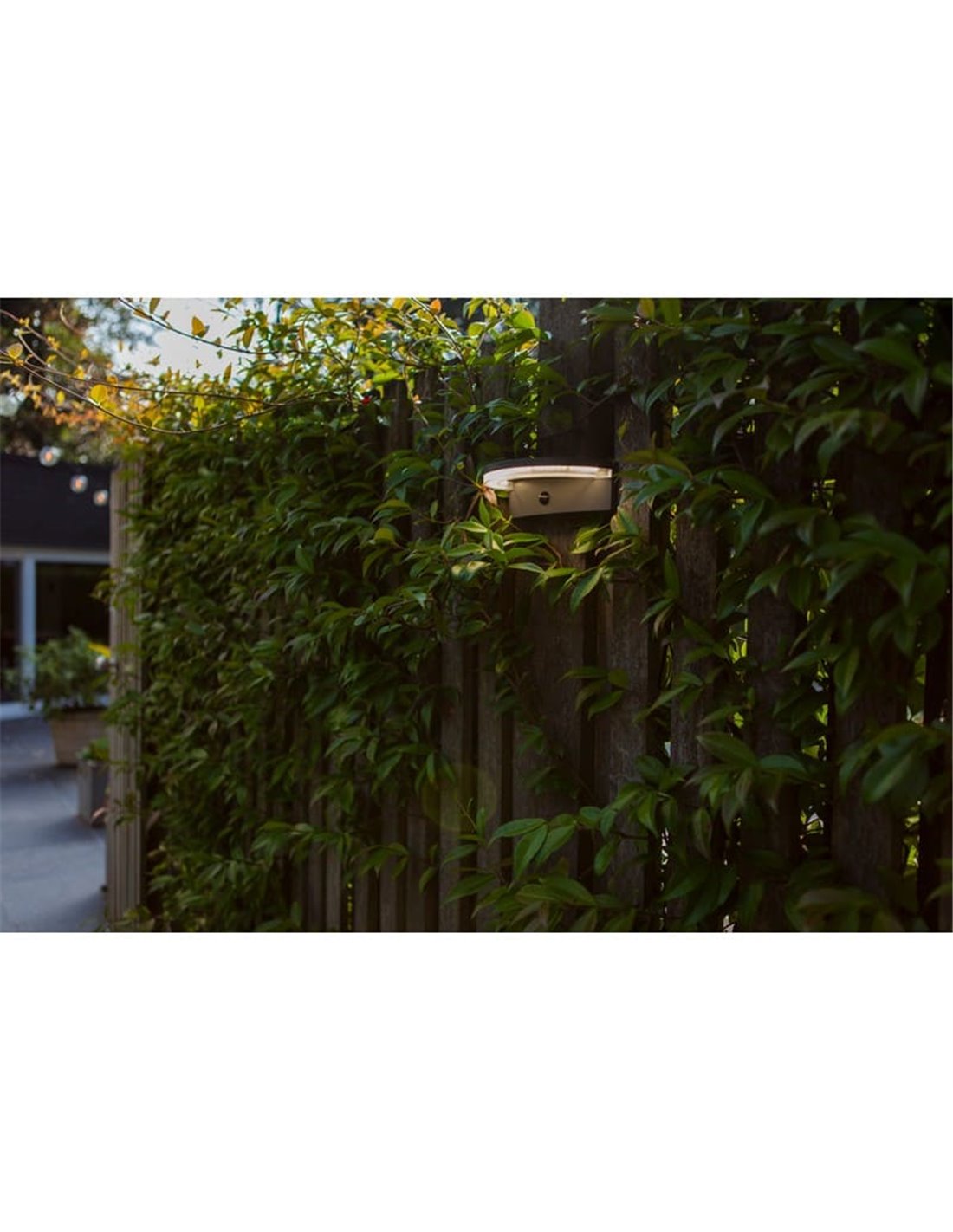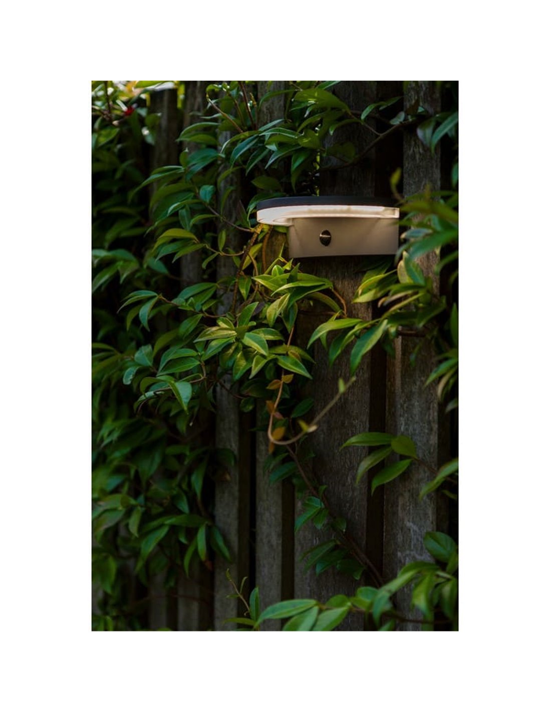 A arandela solar LED Lutec VYZOR combina design moderno com tecnologia solar avançada para fornecer uma solução de iluminação externa eficiente e segura. Seu formato semicircular e acabamento cinza escuro fazem dele uma opção elegante para qualquer fachada.
