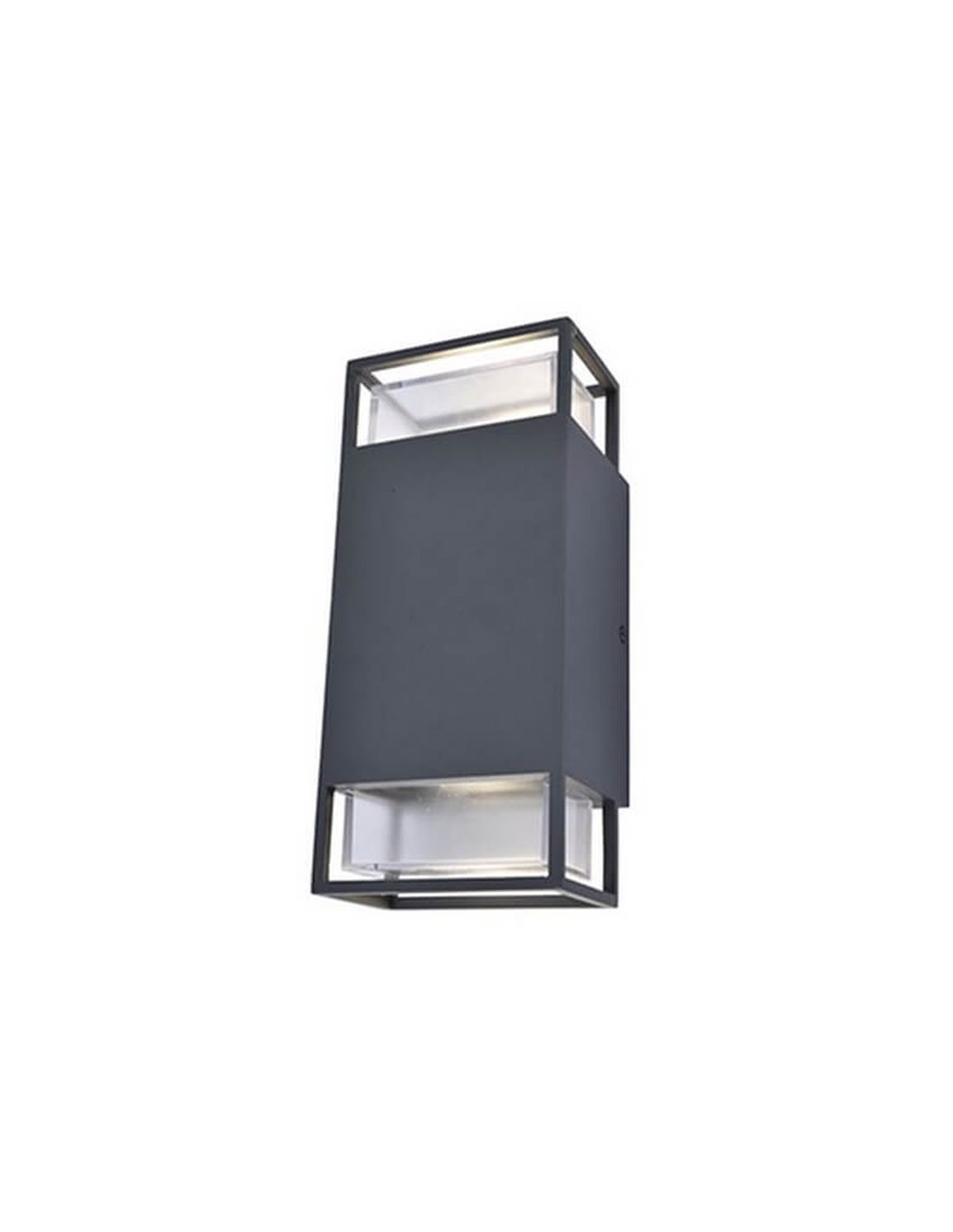 Ridge é um aplique para exterior em acabamento cinza escuro com iluminação ascendente e descendente , muito resistente e elegante, fabricado em alumínio (IP54).