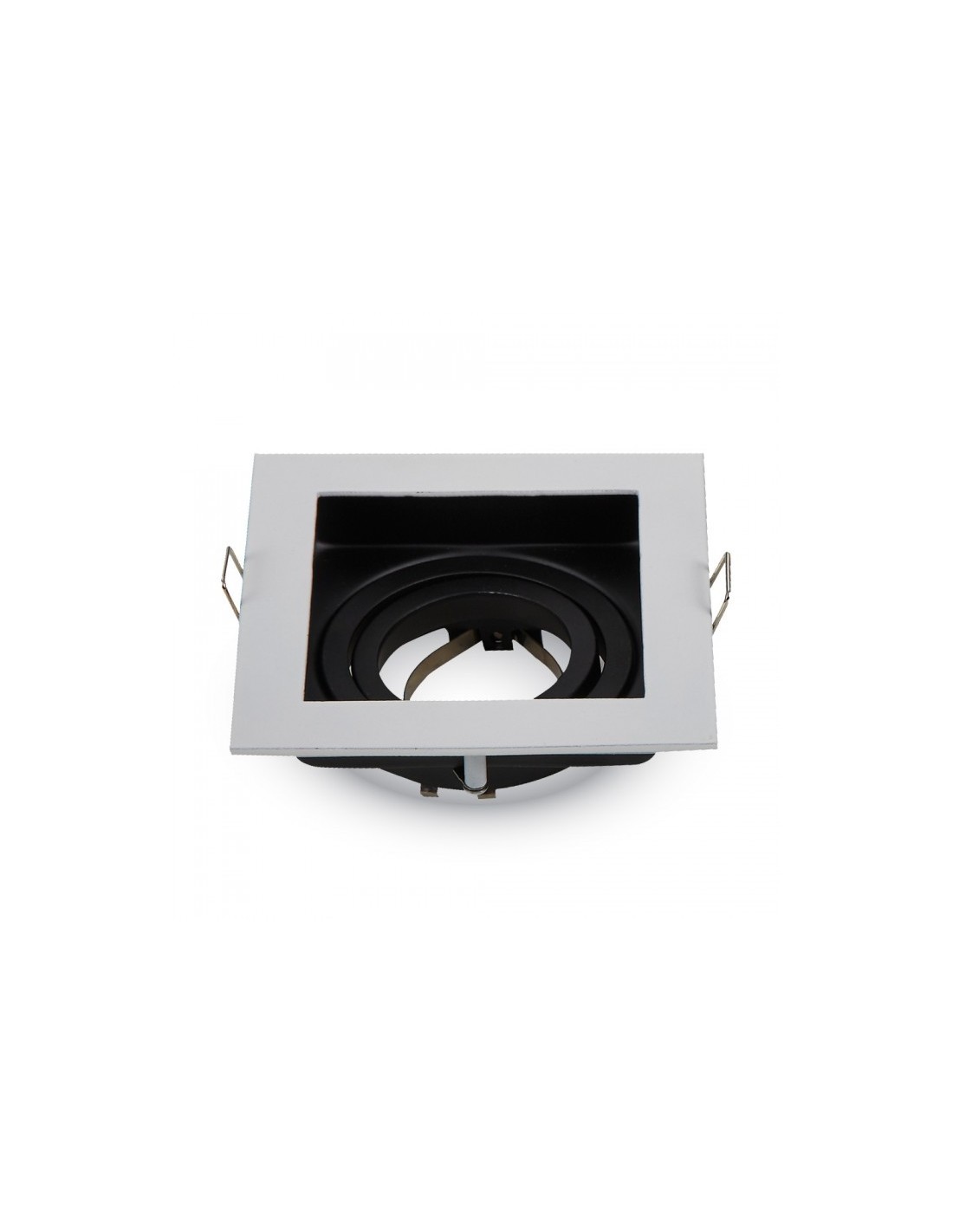 Anel Inclinável Rebaixado para Lâmpada LED Dicoricas GU10 (Lâmpada e Soquete MR16/GU10 não inclusos), corte quadrado de 9Cm x 9Cm e medida externa de 10Cm X 10Cm, fabricado em alumínio de alta qualidade.