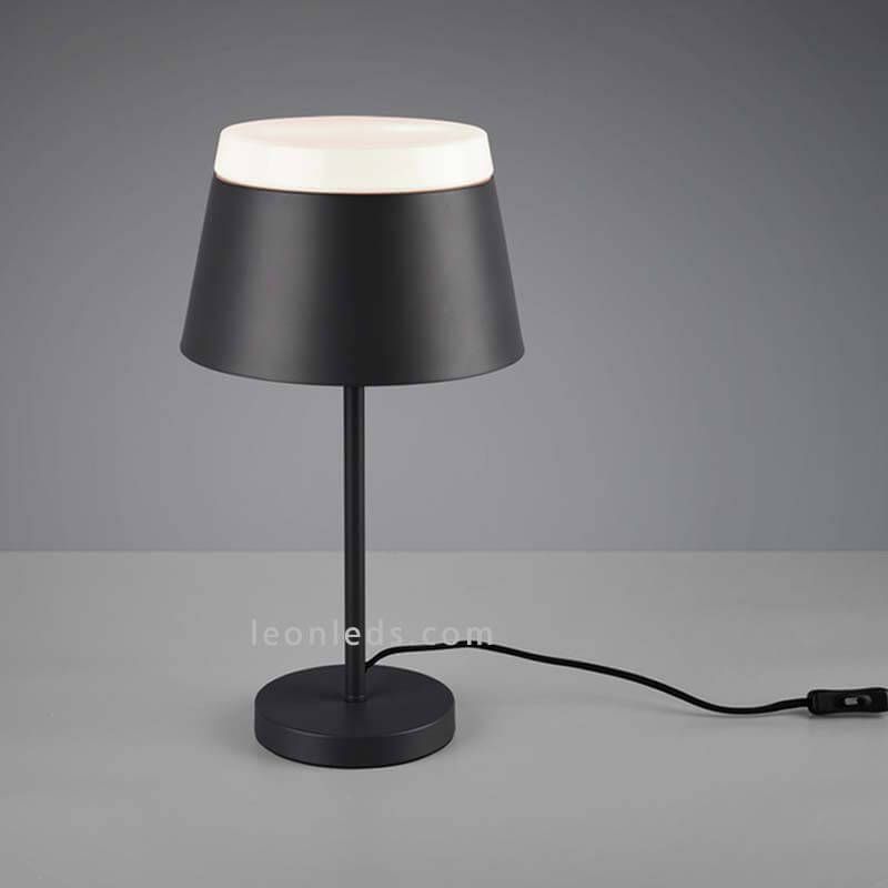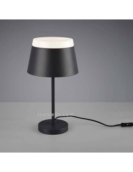 Candeeiro de mesa preto com estrutura metálica preta e abajur redondo preto com parte superior translúcida para dar um toque diferente e moderno a este candeeiro da série Baroness , oferece uma altura de 45cm e um diâmetro de 25cm, precisa de 2 lâmpadas com parafuso E14 não incluso.