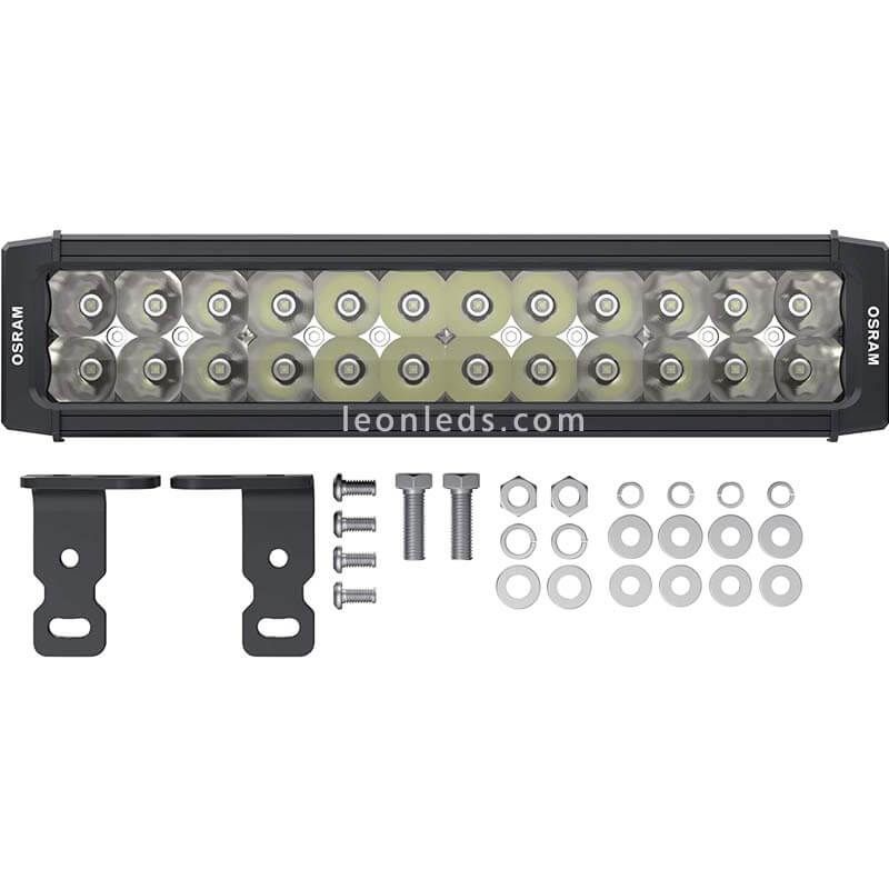 Barra de LED com óptica Combo, combina luz de longo alcance na parte central e luz de campo ampla em extremos, o fabricante é Osram e modelo é VX250-CB LEDDL117-CB com uma potência total de seus 24 chips de osram de alta potência de 36W e uma intensidade de luz de 2.100Lm, válida para 12V e 24V, inclui cabo 45Cm, dimensões ver em foto e grau de proteção contra água e poeira de IP67. A gama original de Osram com 2 anos de garantia, não emite frequências de rádio na estação de rádio ou rádio R10 e é aprovada com R112 ECE.