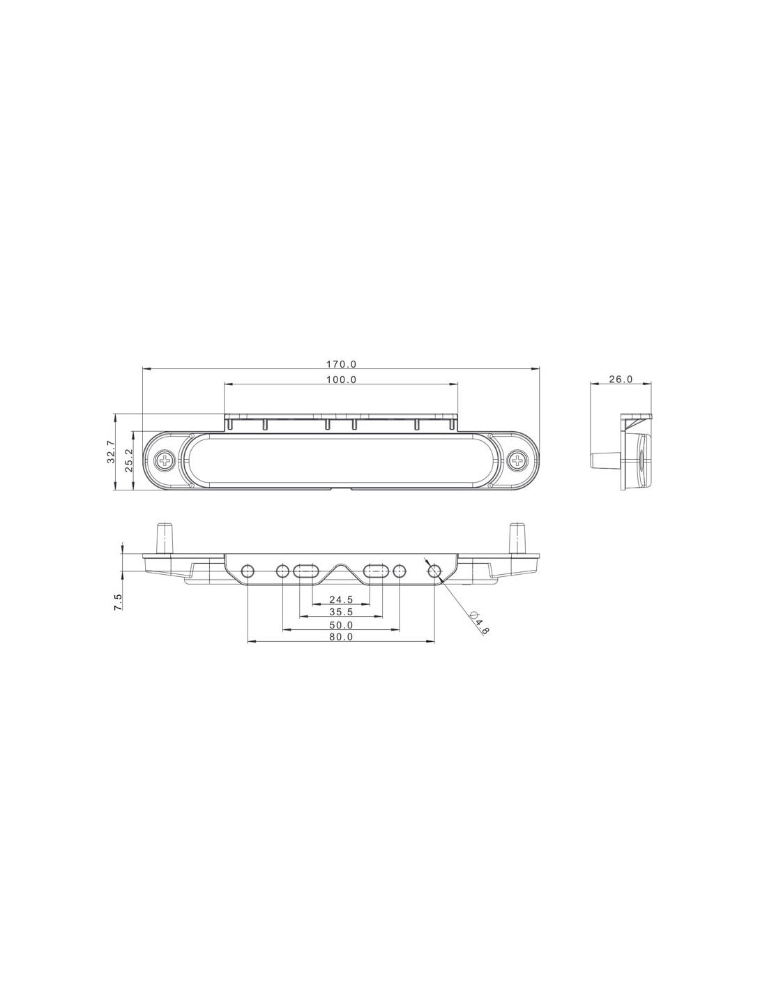 Esta Barra LED é válida para instalação em instalações de 12V e 24V; Seu consumo de corrente (valor de pico) em 12V para a luz frontal e lateral consome 0,025A e 0,3W de potência nominal e a luz traseira consome 0,05A e 0,6W. Em 24V para luz frontal e lateral seu consumo de corrente (valor de pico) é de 0,025A e 0,6w e na luz traseira 0,05A e 1,2W.