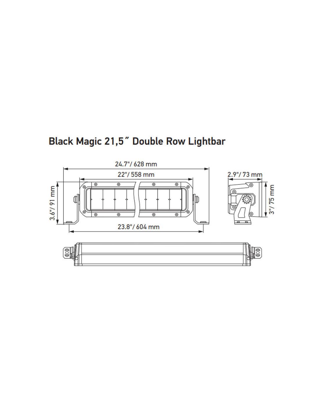 Barra LED Double LED Line de 21,5" da série Hella Black Magic, esta barra LED possui duas linhas de 40 LEDs de alta potência que oferecem uma intensidade luminosa de 5.500Lm com um consumo de 92W, é aprovado pela ECE E149 e EMC R10 e CEPE 45 . São válidos para 12V e 24V e o feixe de luz é Combo, combina luz de longo alcance com luz de campo amplo. Barra LED 1FJ 358 196-401 com 7,5cm de altura e 73mm de profundidade, outras medidas ver foto.