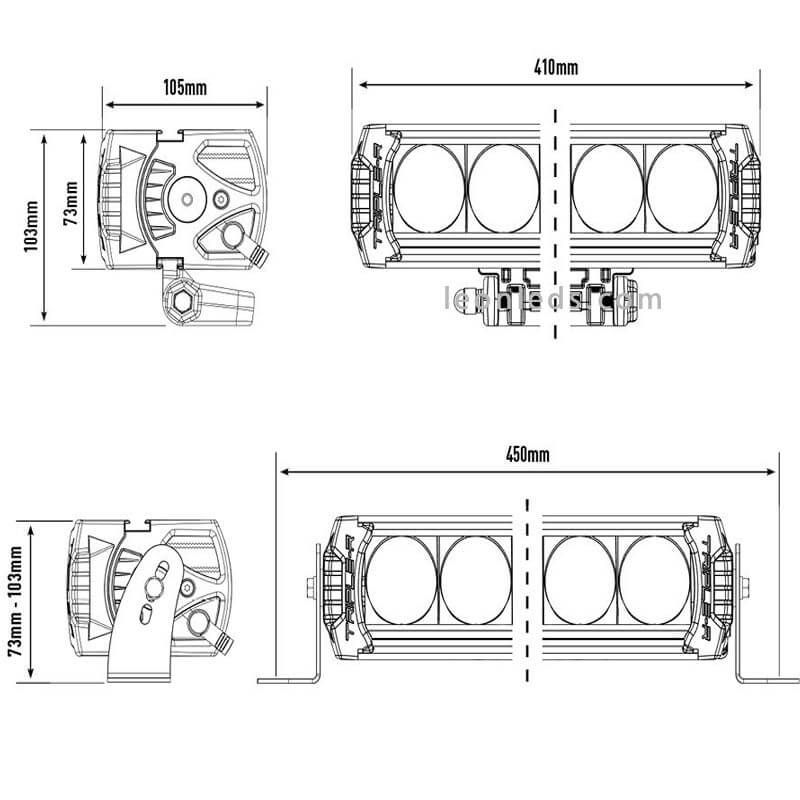 Com apenas um 41Comprimento Cm, barra de LED R 1000 Genial 2 é a melhor opção em caso de espaços reduzidos na frente do carro, caminhão ou 4X4 ou Buggy, o resto das dimensões que você pode ver abaixo: