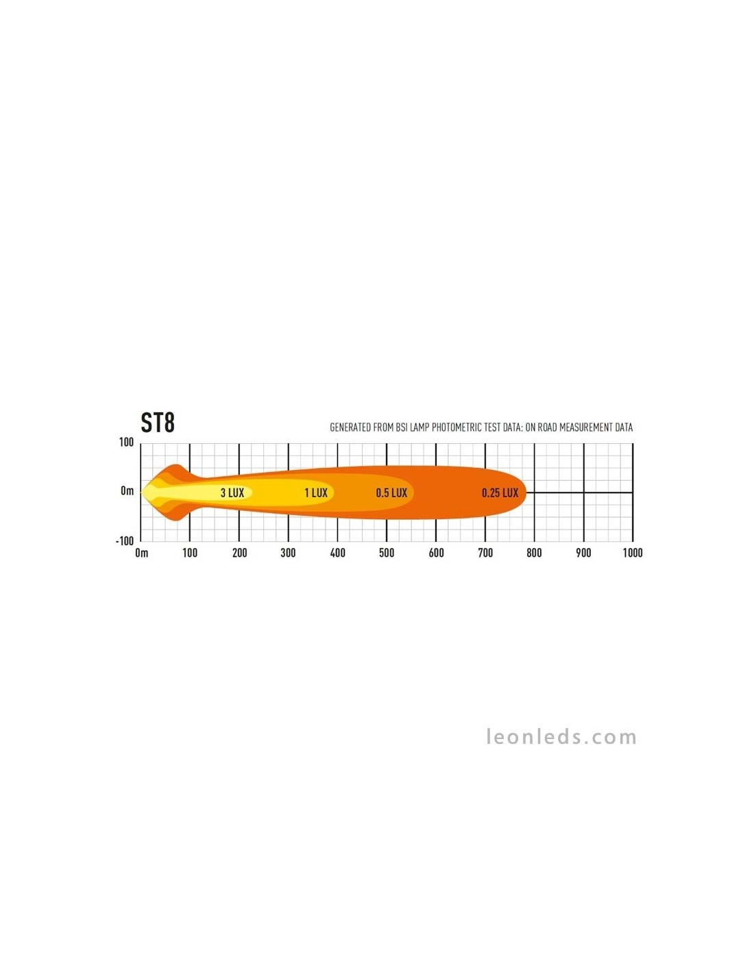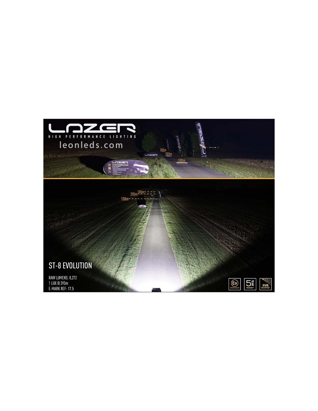 Barra de LED para veículos 4X4, caminhões, Carros da marca Lazer. O modelo ST8 Evolution oferece-nos 0,25Lx a quase 800m de alcance. Esta barra apresenta o ECE R112 Homologação com 17,5 pontos de luz.