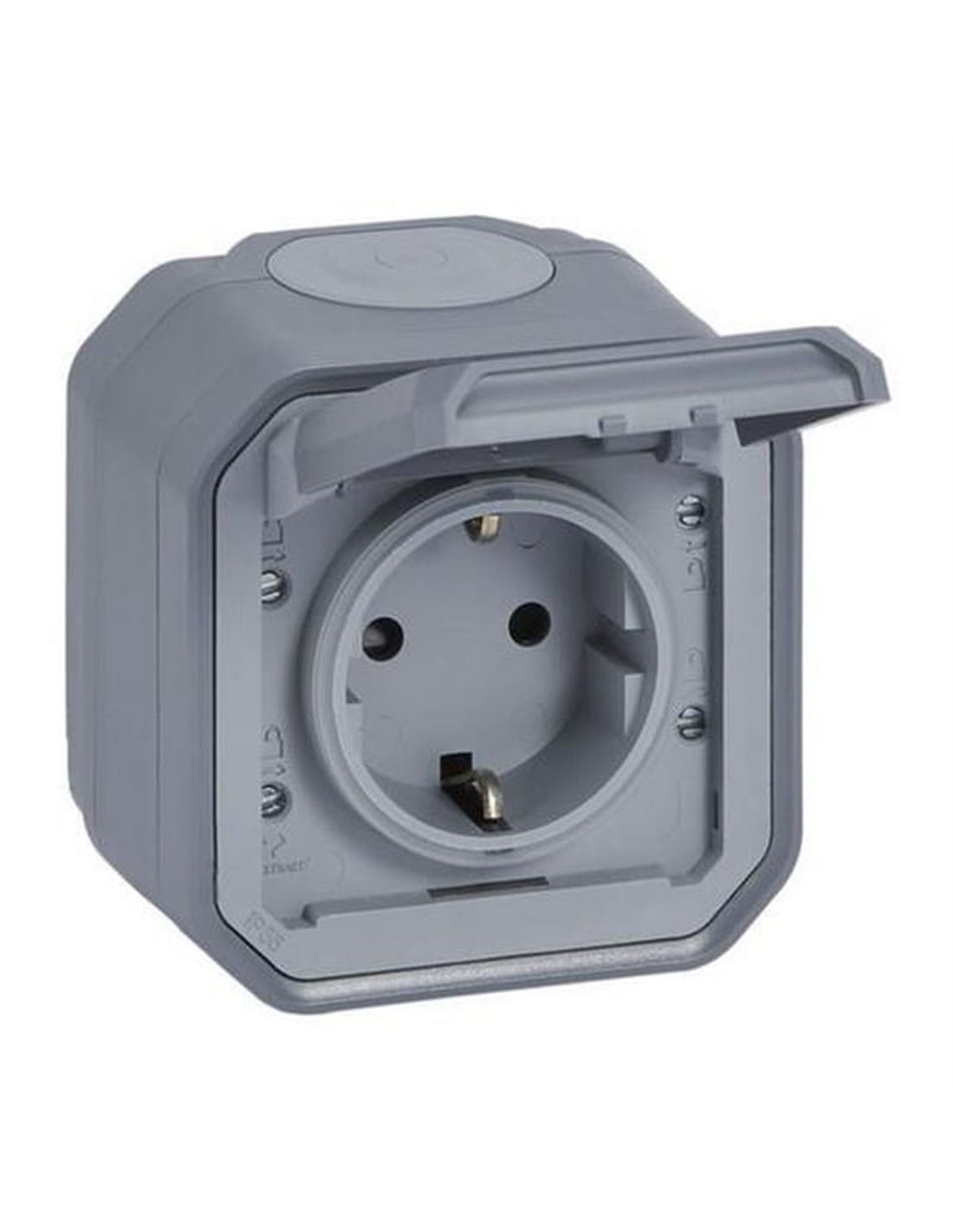 Nova tomada de superfície monobloco PLEXO 2P+T IP55 cinza da Legrand