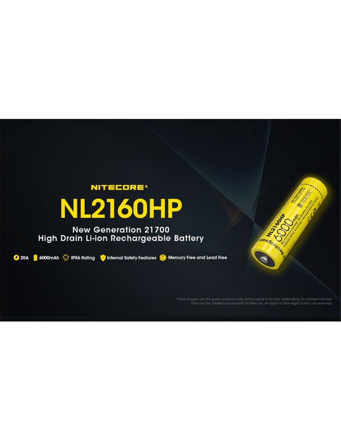 Bateria NITECORE NL2160HP de 6000mAh e 20A de descarga contínua, projetada para lanternas de alto desempenho. Oferece proteção eletrônica avançada, construção robusta e mais de 500 ciclos de carga. Ideal para dispositivos de alta potência.