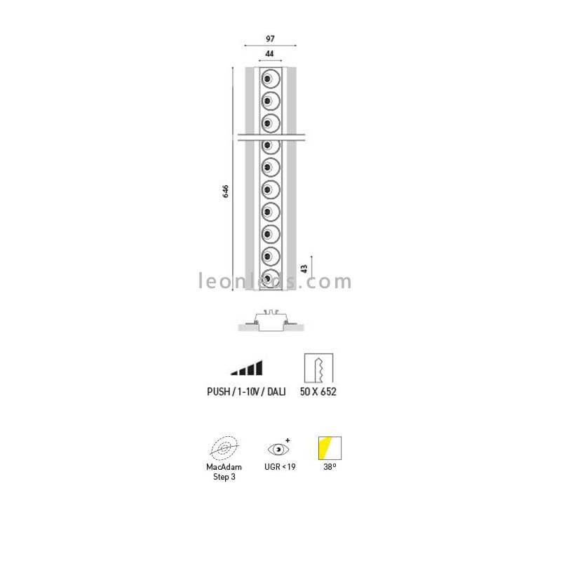 Isto é o seguinte. Preto adotivo assimétrico trimless com 15 Foco LED, um novo conceito de iluminação LED mini do fabricante espanhol ArkosLight. oferece proteção contra o deslumbramento, 3 protocolos de regulação de intensidade diferente e 3 sombras de luz diferentes. Abaixo, expandimos as informações do produto.