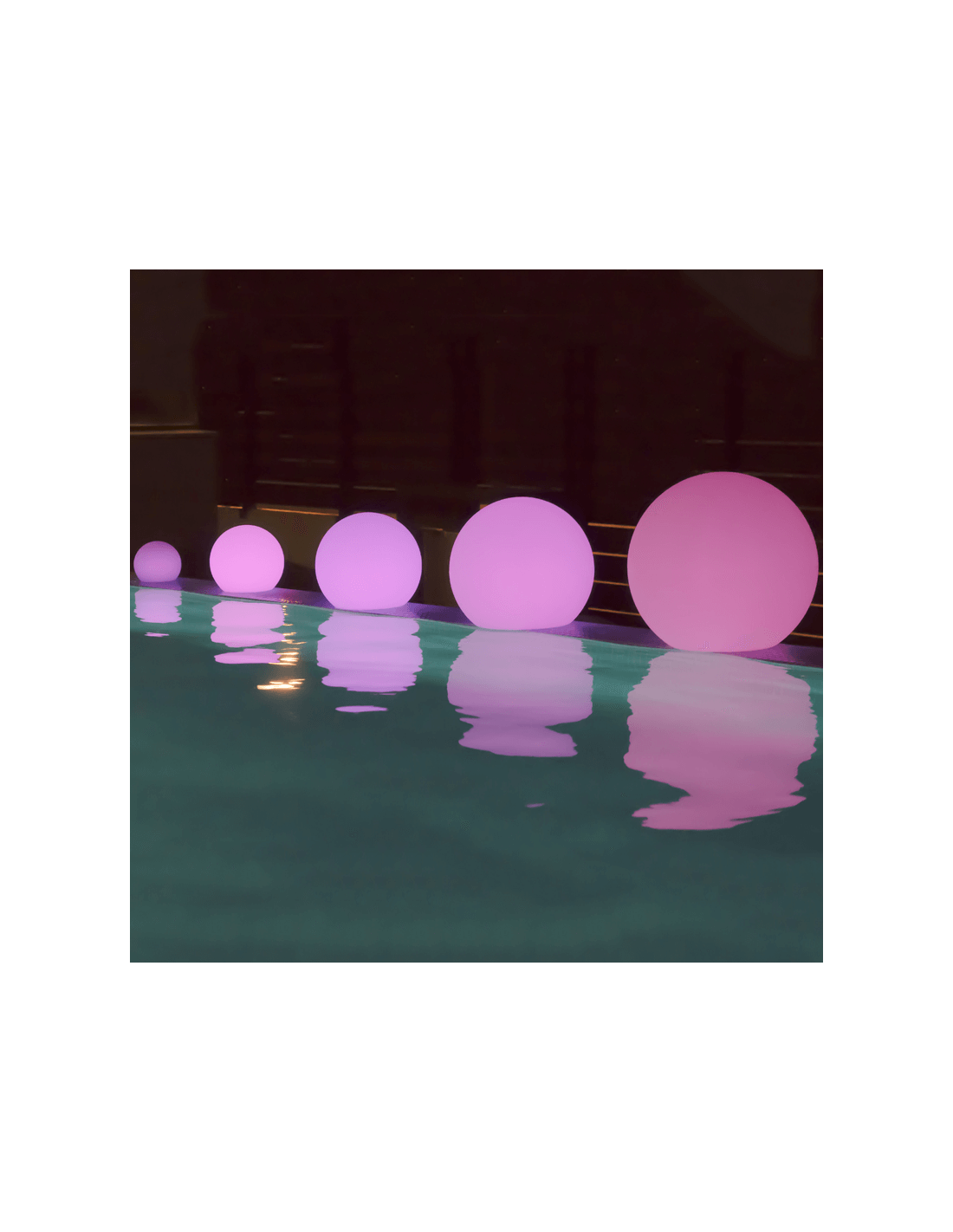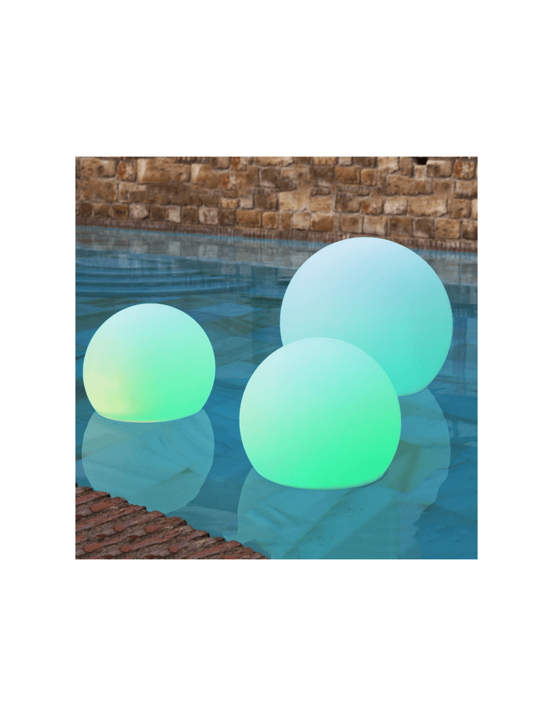 Possui iluminação LED RGB e luz branca fria (6000K) , permitindo criar diferentes ambientes através do controle remoto . Sua luz difusa e uniforme é perfeita para decorar jardins, terraços, eventos ou áreas de piscina.