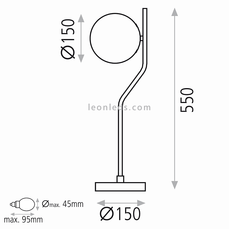 Precisa de uma lâmpada LED E27 de 15W (máximo) com a qual ilumina magistralmente a sala em que está instalada, ao mesmo tempo que nos ajuda a poupar na conta da electricidade. Possui protecção IP20 que protege a lâmpada contra sólidos com mais de 12mm.