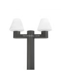 É sobre um Lâmpada de jardim exterior com uma altura de 215Cm, uma largura de 19Cm e um diâmetro na base de 18.4Cm, é feito em alumínio de cinza escuro e os 2 difusores de luz em PMMA branco mate. A resistência desta lâmpada em frente à água e a poeira é IP44 e o estilo que oferece é moderno, mas sempre será adaptado ao espaço destinado à sua colocação, uma vez que a sua cor antracite combina perfeitamente em qualquer jardim ou decoração exterior.