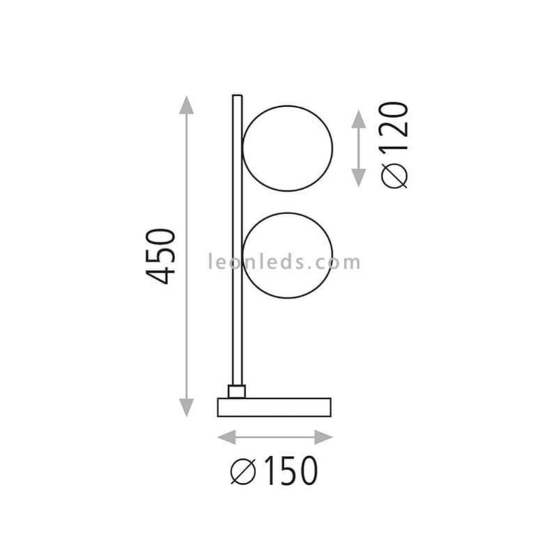 Candeeiro de mesa em vidro ACB Iluminación Doris 2xG9. É feito com uma base redonda e um pé de metal fino e alongado que acomoda 2 bolas de vidro opalizado que emitirão luz. Está disponível em acabamento texturizado preto ou dourado.