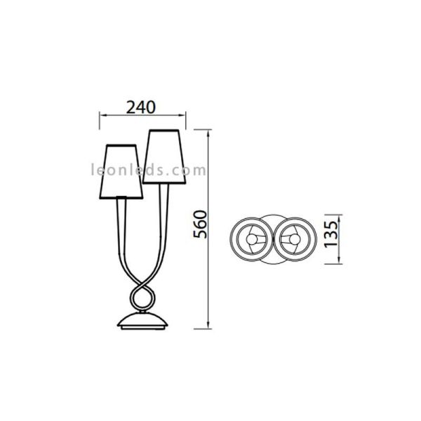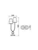 É isto. Lâmpada de mesa Clássico tem uma altura de 56Cm e um diâmetro de base de 13,5Cm e uma largura de 24Cm. Essas medidas podem ser vistas em uma das fotos.