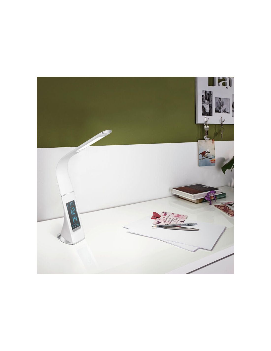Funciona com tecnologia LED integrada com tom de luz branca neutra de 5000k e potência de 3,2W e 300 lumens , pelo que lhe proporcionará a luz ideal para a realização de atividades de trabalho e estudo. Além disso, inclui um interruptor táctil "Touch me" que lhe permitirá regular a intensidade da luz em 3 níveis diferentes , permitindo-lhe obter sempre a iluminação perfeita.