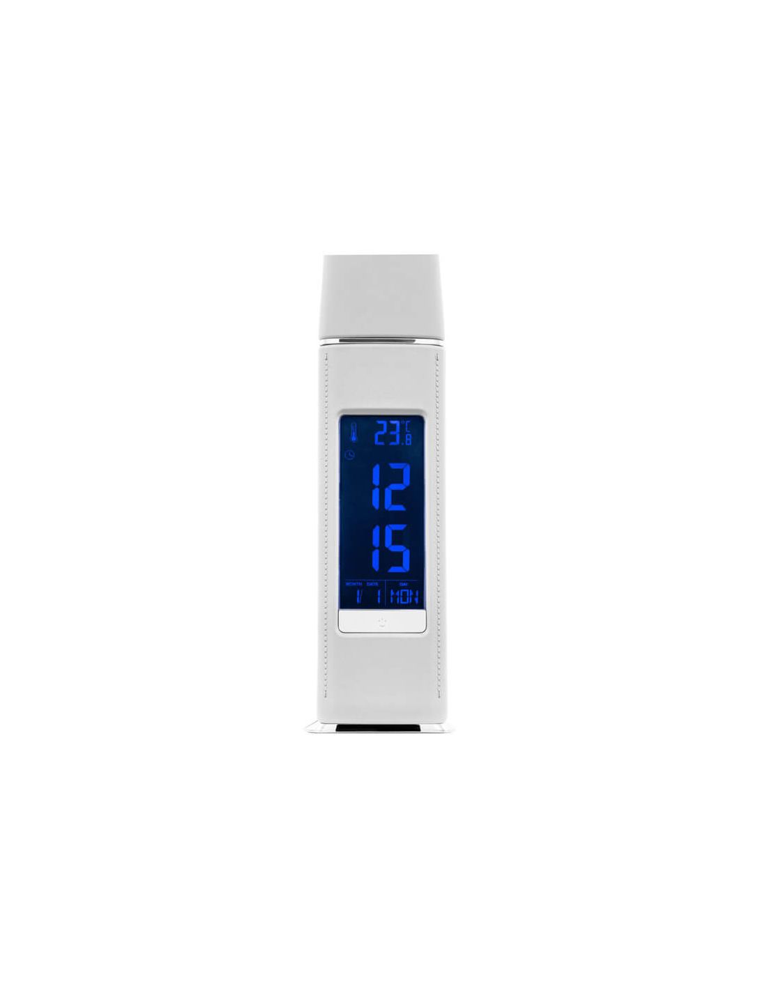 Na parte inferior do candeeiro inclui um envoltório de couro branco que protege a tela digital e vai adicionar elegância extra ao design deste candeeiro Cognoli que se tornará um ponto de atração na sua casa ou escritório.