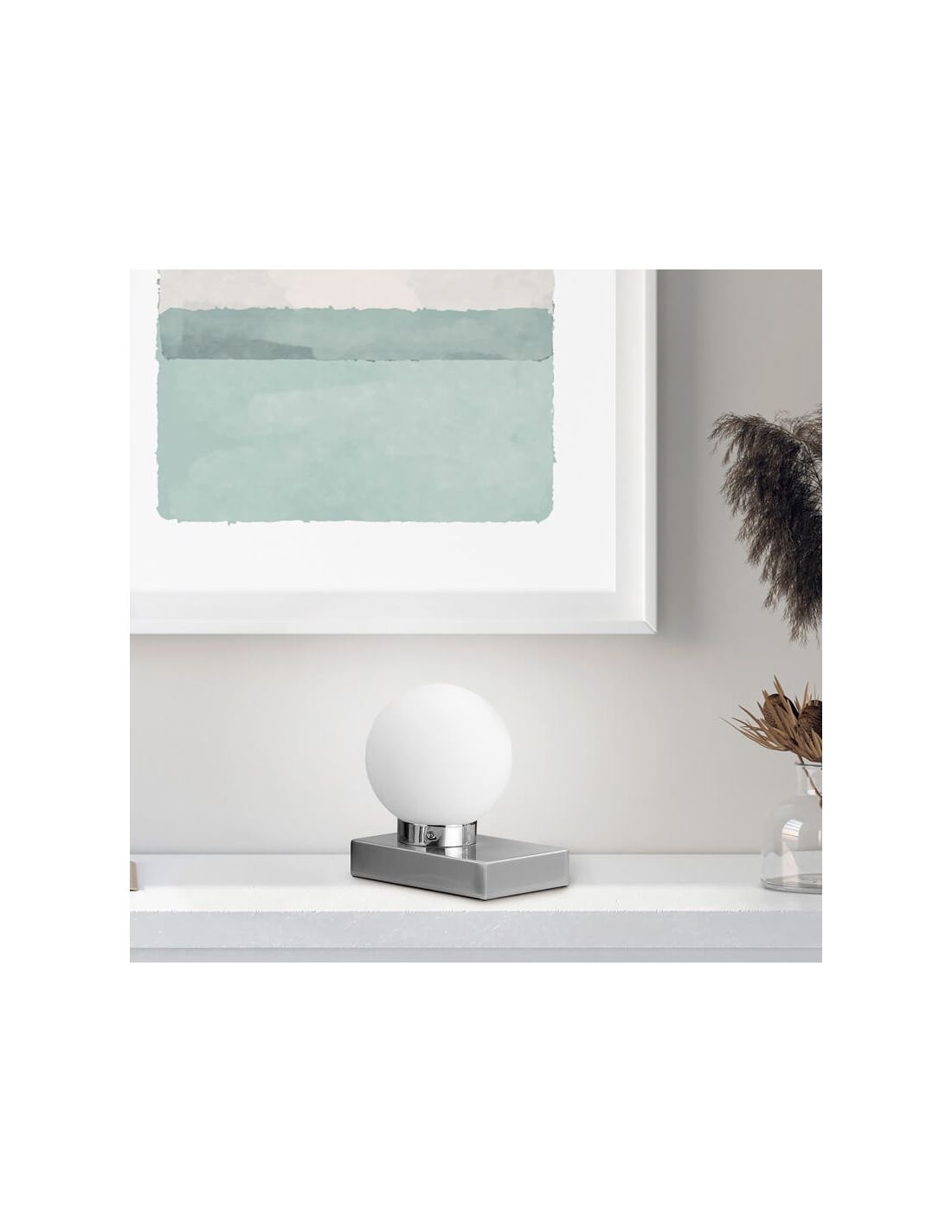 Apresentamos-lhe um candeeiro de mesa original, eficiente e com uma estética que se adapta facilmente a qualquer tipo de design de interiores moderno : o modelo Davi II. Combina um corpo em níquel fosco e vidro branco para alcançar seu design original.