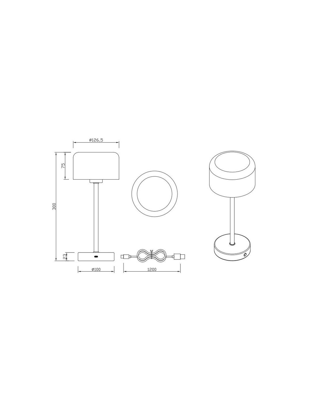 Candeeiro de mesa LED JEFF Bateria recarregável USB 1.5W 120lm 3000K
