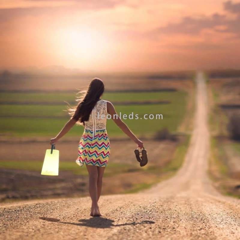 É também uma excelente opção para iluminar as mesas dos terraços de bares e restaurantes, pois graças ao facto de a sua bateria poder ser recarregada por carga solar, não necessitará de a ter ligada a um cabo eléctrico e, portanto, não lhe custará qualquer energia. Além disso, esta lâmpada Nómada incorpora um sensor crepuscular para activar automaticamente a sua iluminação nas horas mais escuras do dia.