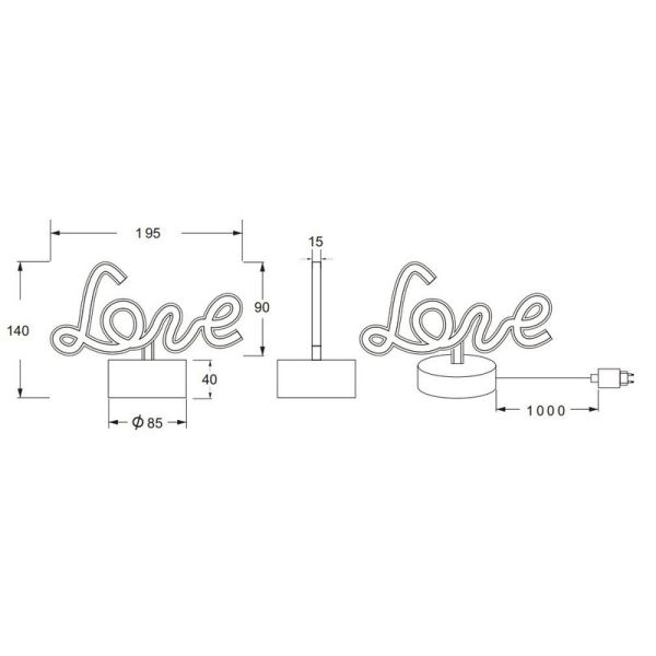 Luminária de parede LED neon HELLO 2W com cabo e USB IP20 Rosa