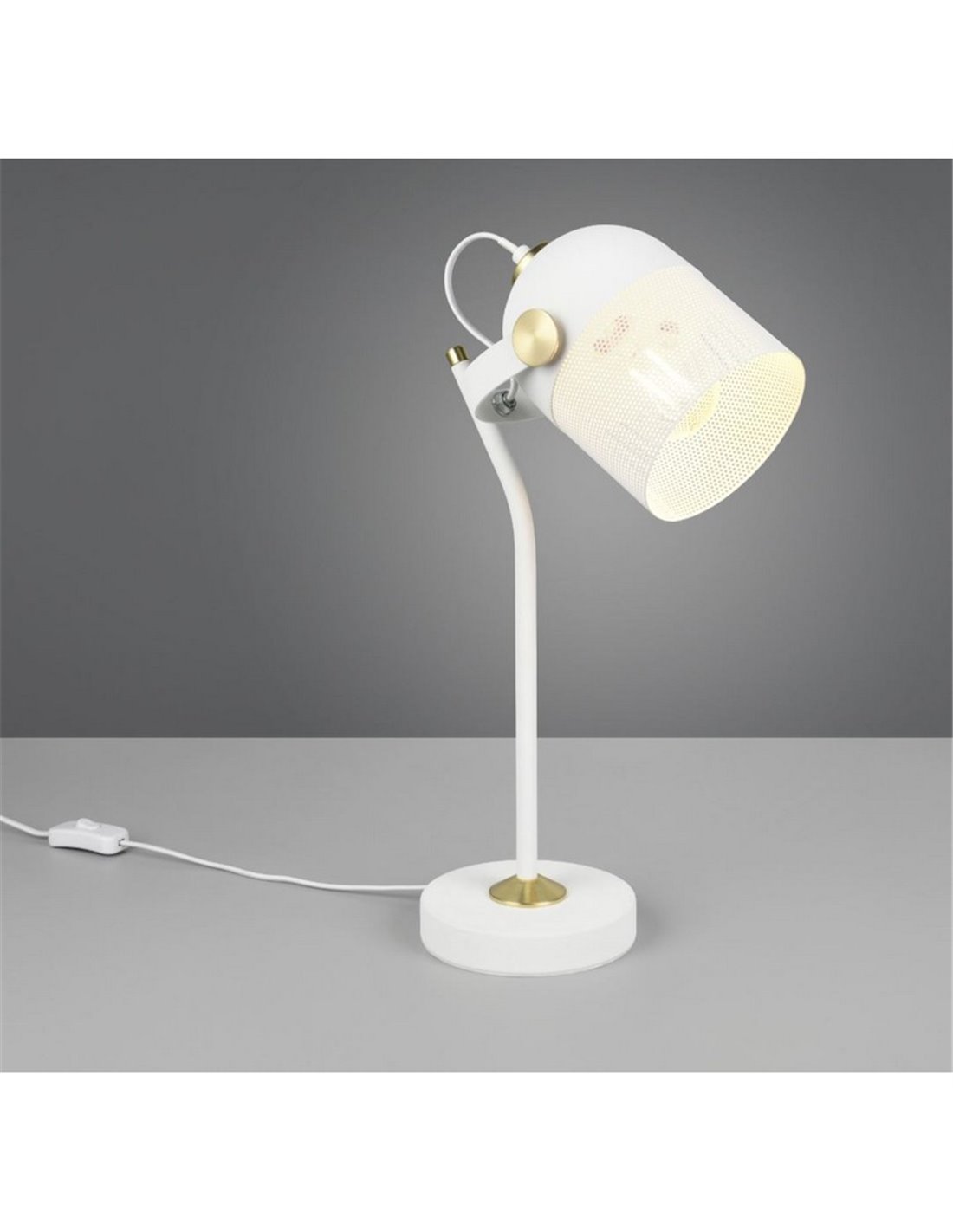 Luminária de mesa MIXA com cúpula de malha branca. Utiliza uma lâmpada E27 (máx. 10 W) (não incluída) e possui interruptor no fio . Feita de metal, adiciona um toque moderno e leve a qualquer ambiente. Proteção IP20 .