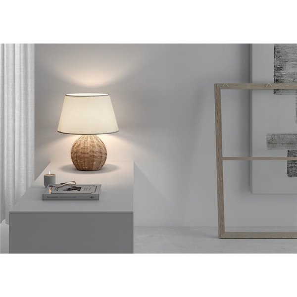 O abajur NAIROBI da MDC combina um corpo redondo feito de vime natural com uma cúpula branca , criando uma iluminação aconchegante e acolhedora. Seu estilo boho e rústico o torna ideal para salas, quartos e espaços com decoração natural. Compatível com lâmpada E27 (não incluída).