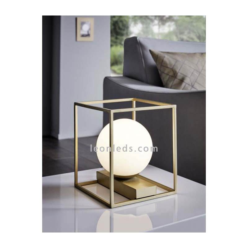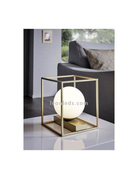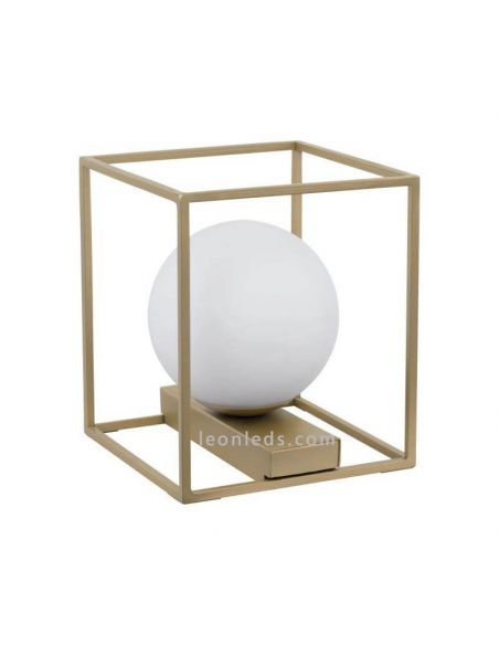 Candeeiro de mesa quadrado Vallaspra da Eglo Iluminación . Este candeeiro tem um acabamento perfeito e original, uma vez que a sua forma quadrada na cor champanhe é decorada no interior com uma bola de luz branca, que terá um óptimo aspecto decorativo em qualquer canto da sua casa. É um candeeiro de mesa que acrescenta elegância e modernidade a qualquer sala. É perfeito para decorar e iluminar quartos, pois a luz que emite é muito relaxante e, visualmente, é ideal para criar um ambiente agradável nos quartos.