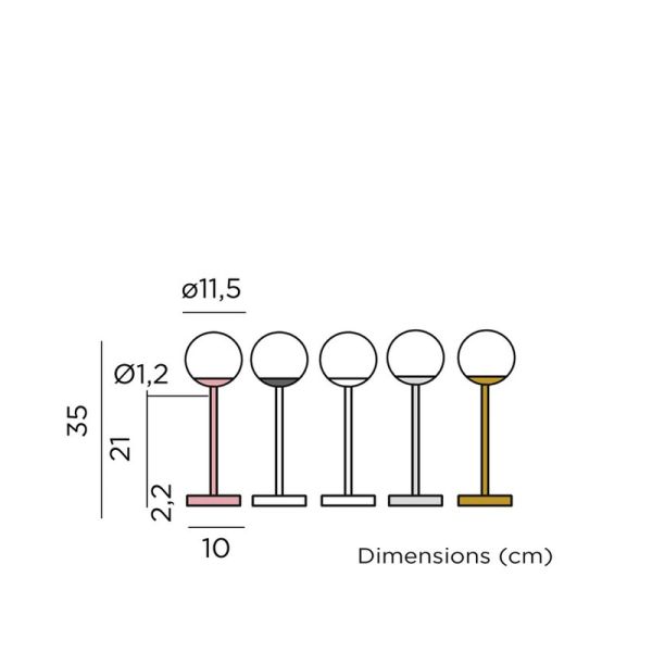 Este dispositivo é ideal para qualquer canto da sua casa, áreas infantis ou quartos de dormir e cabe em qualquer sala interior ou exterior (IP44) devido ao seu tamanho e está disponível em cinco cores diferentes (antracite, ouro rosa, branco, ouro, cinzento). É um óptimo elemento decorativo para iluminar mesas em restaurantes, terraços ou empresas.