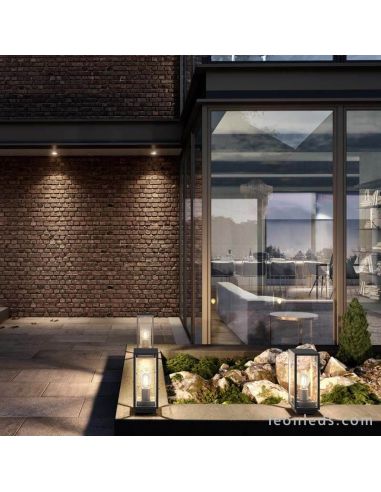 Sobreposição para instalação ao ar livre cor de grafite com uma estrutura feita de alumínio e uma tela de vidro, no interior é acomodado uma tampa para instalar 1 lâmpada LED, recomendamos instalar o estilo vintage bulbo, filamento e A60 formato com tons quentes 3000K. Leste Overmide de Farol Tem uma altura de 35Cm e pode ser combinado com o resto de Lâmpadas de diferentes formatos externos da série Meribel, com esta série você pode decorar o exterior de uma casa cheia.