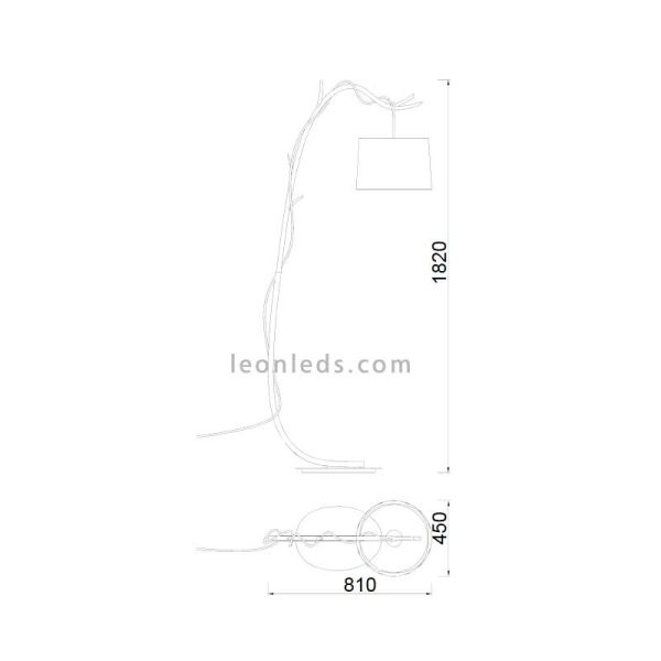 A lâmpada de chão da série Sabina tem uma exposição têxtil de arpillera com um diâmetro de 45Cm, dentro você pode instalar uma lâmpada LED com rosca E27. Esta lâmpada de pé tem uma base redonda, uma altura de 182Cm. Da parte de base um elemento curvo imitando um ramo de madeira que segura a lâmpada no topo. O cabo é forrado com tecidos imitando corda, parte da tela e para baixo girando em torno do elemento para o chão onde inclui um interruptor de pé para acender e desligar a lâmpada.